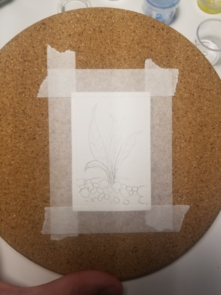 17. An amazon sword plant from my aquarium, I’m quite happy with this one! I let each leaf dry before wetting the next. I painted the shadows in purple.
