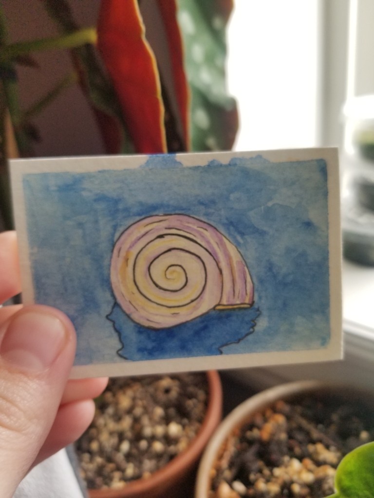 20. Haha! Not my best work… but I didn’t say I was making 100 great tiny paintings! It’s supposed to be a Calathea leaf.