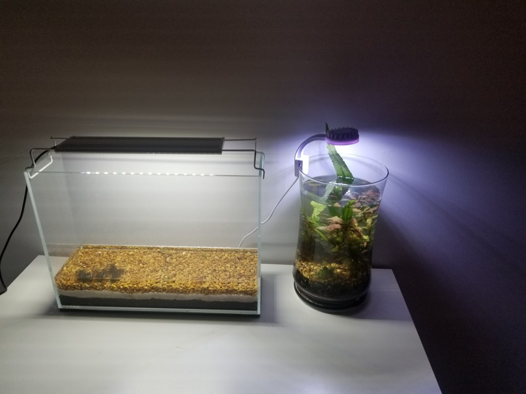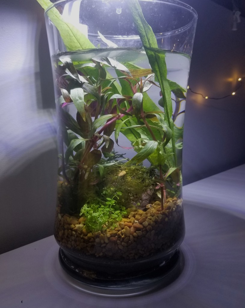 I spent hours watching videos, reading forums, and looking at setups of Walstad method tanks. I had a 1 gallon vase and decided to try it.