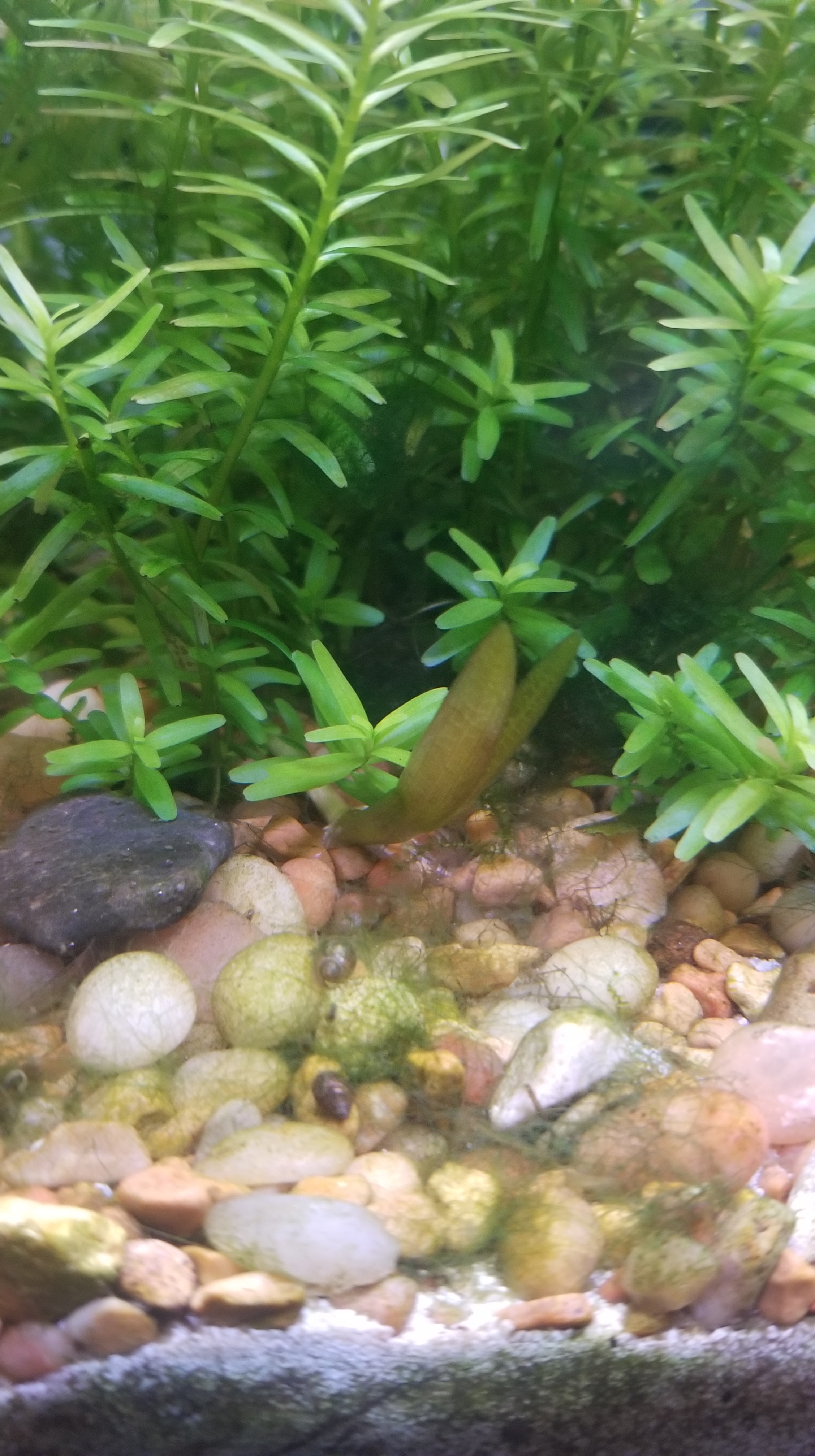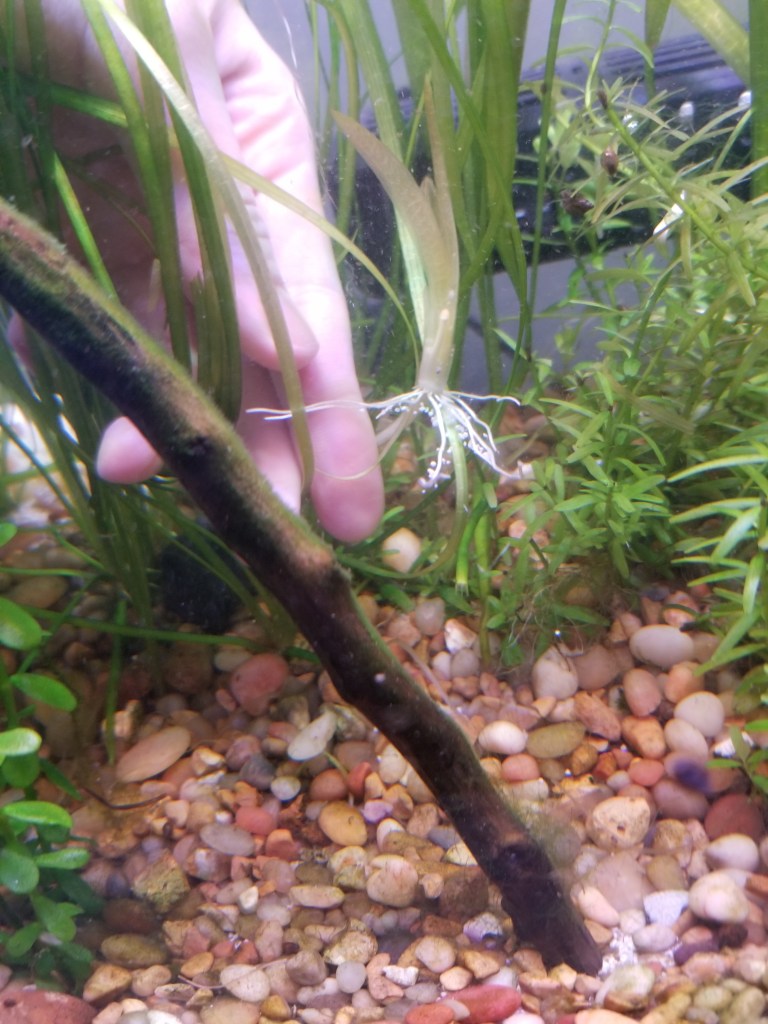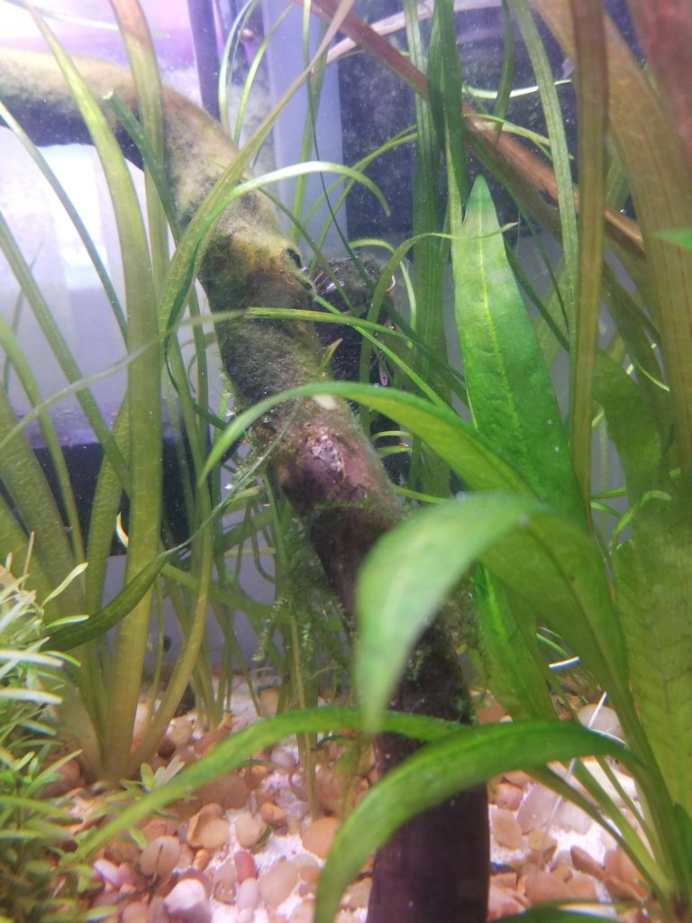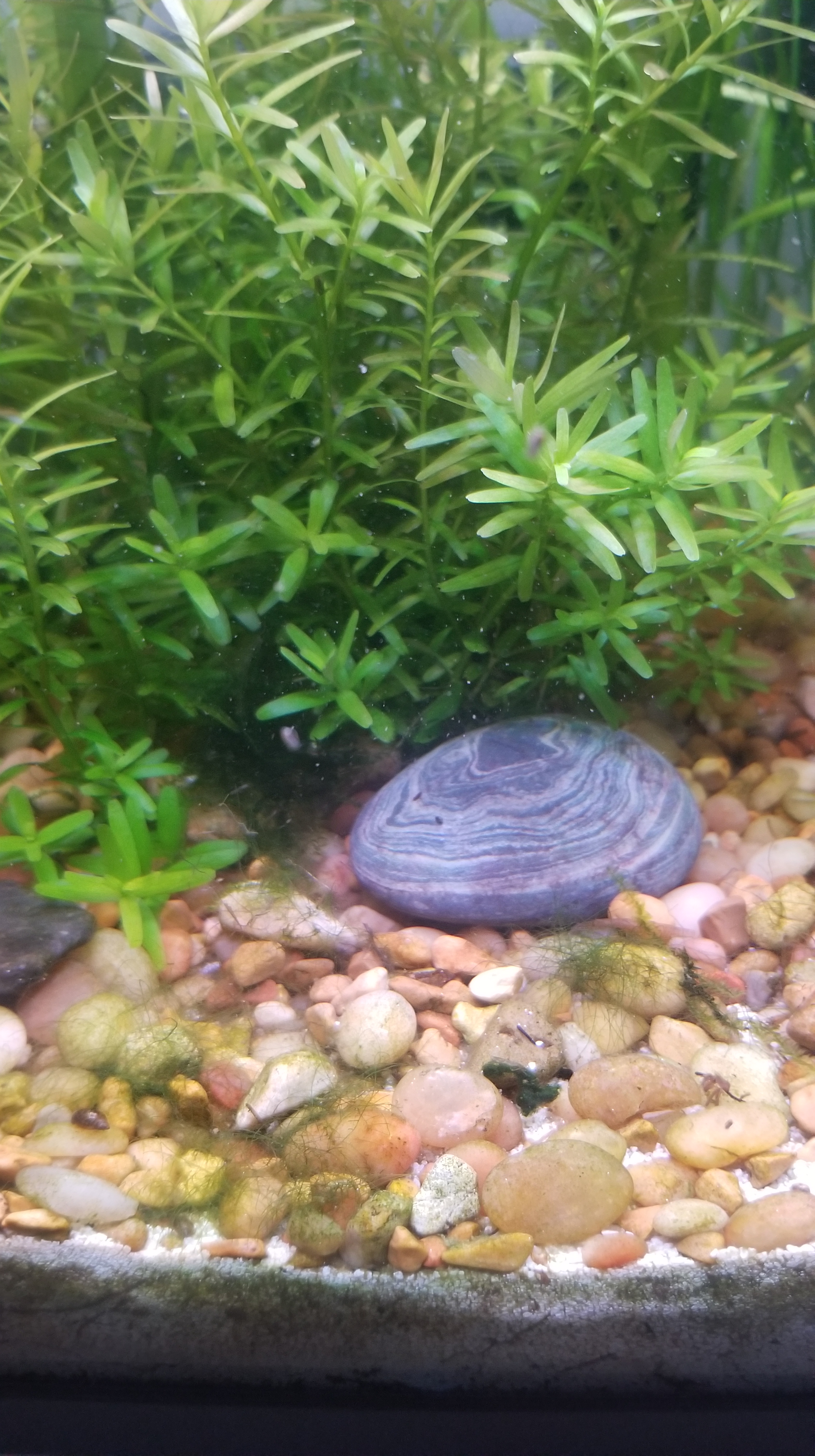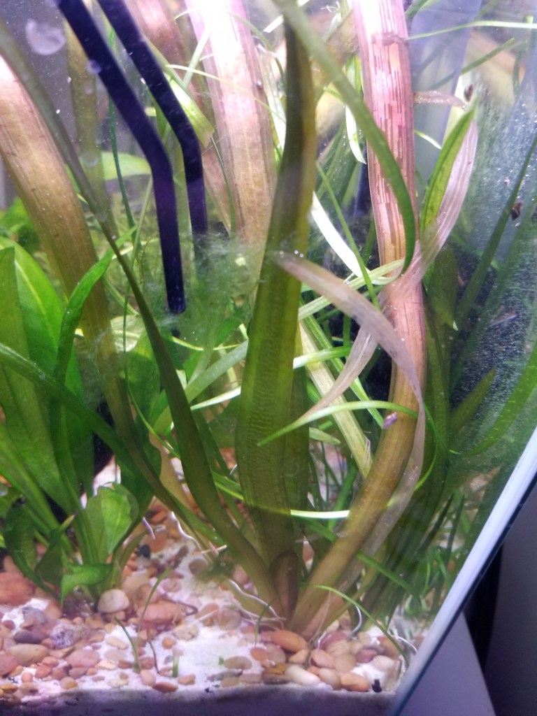 I gave some plants a little trim, to keep them from blocking the light from the neighbouring plants that I want to grow. I had a bag of river rocks, so I’m now experimenting with using them to keep the plants contained. Though I know it’s going to take me awhile to get the knack of hardscaping. I also pulled out some algae and more Vallisneria that was putting pups where I didn’t want them yet. I also added some more liquid fertilizer and added more water.