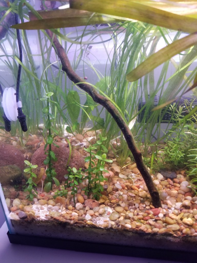 I pulled up the rest of the plants in the front, and moved the healthiest ones next to the Rotala indica and removed some new Vallisneria pups.
