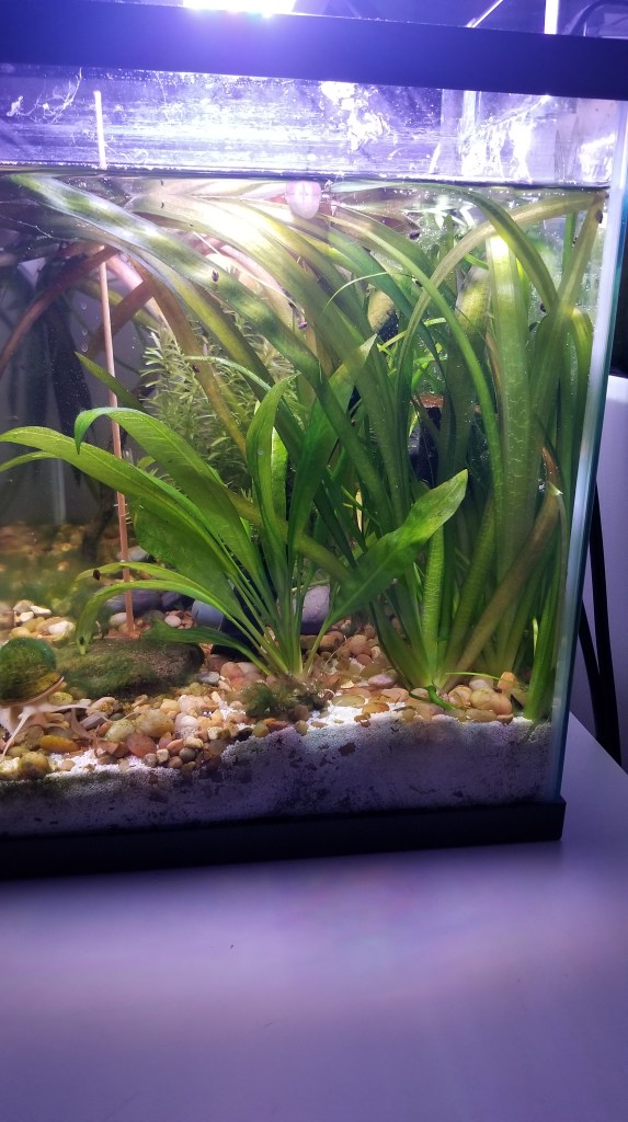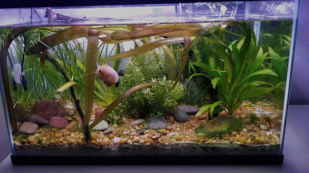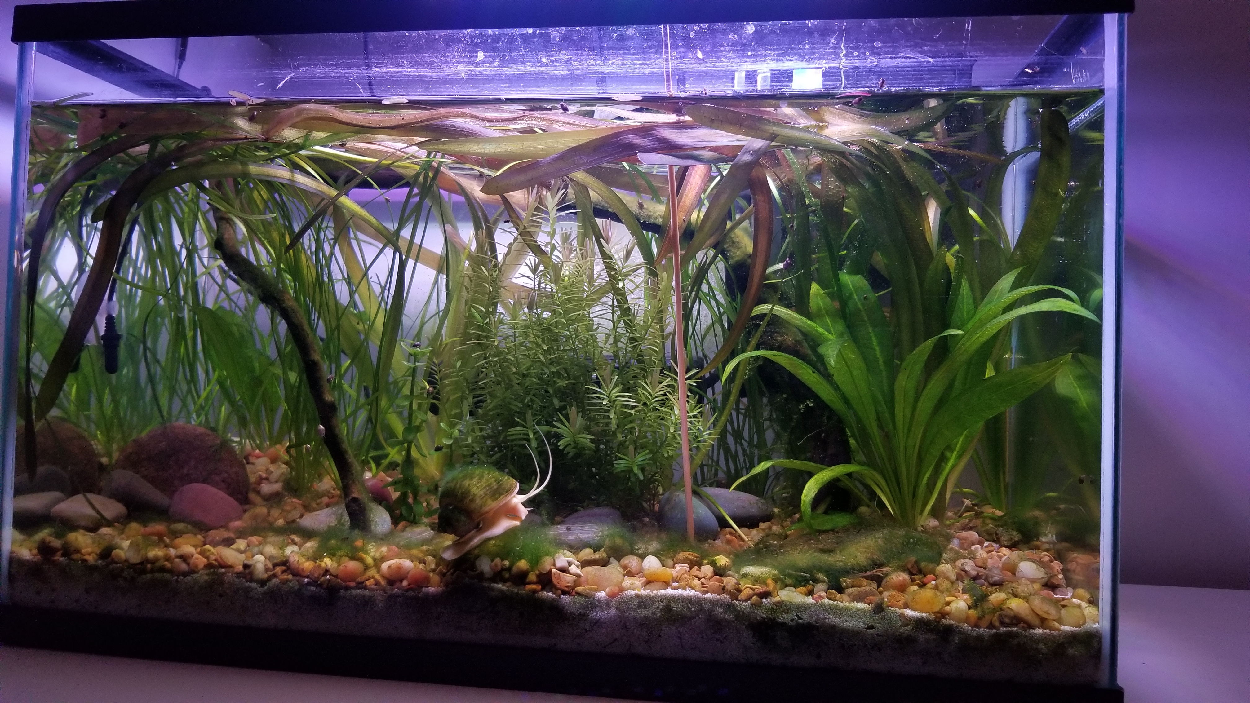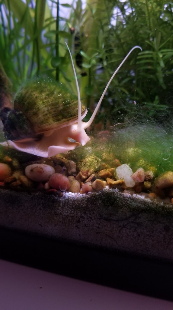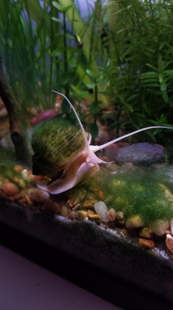 With each week I’m happier and happier with how it looks! My mystery snail, Steve is about 1.5 years old now. Personally I think he’s adorable.