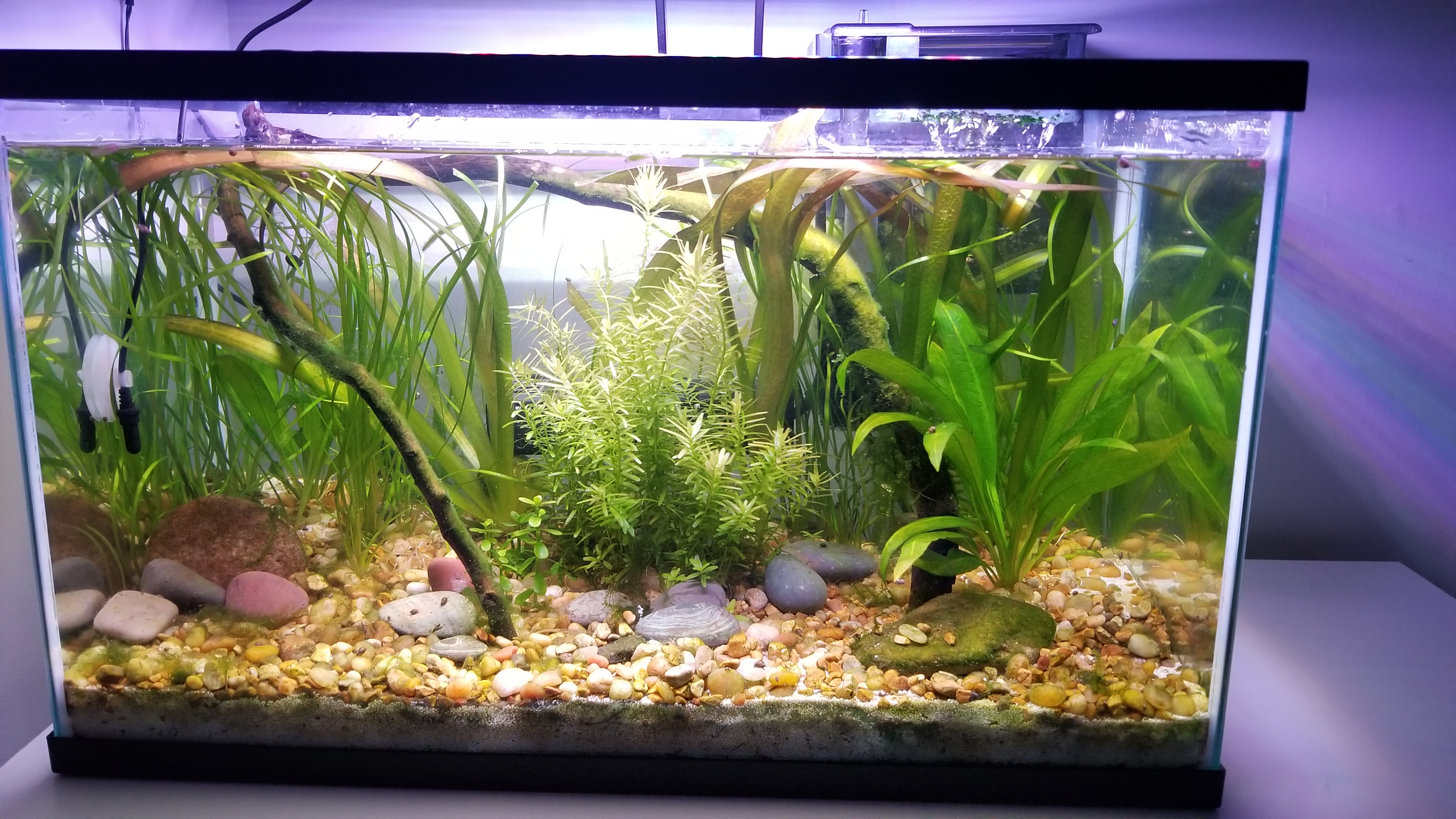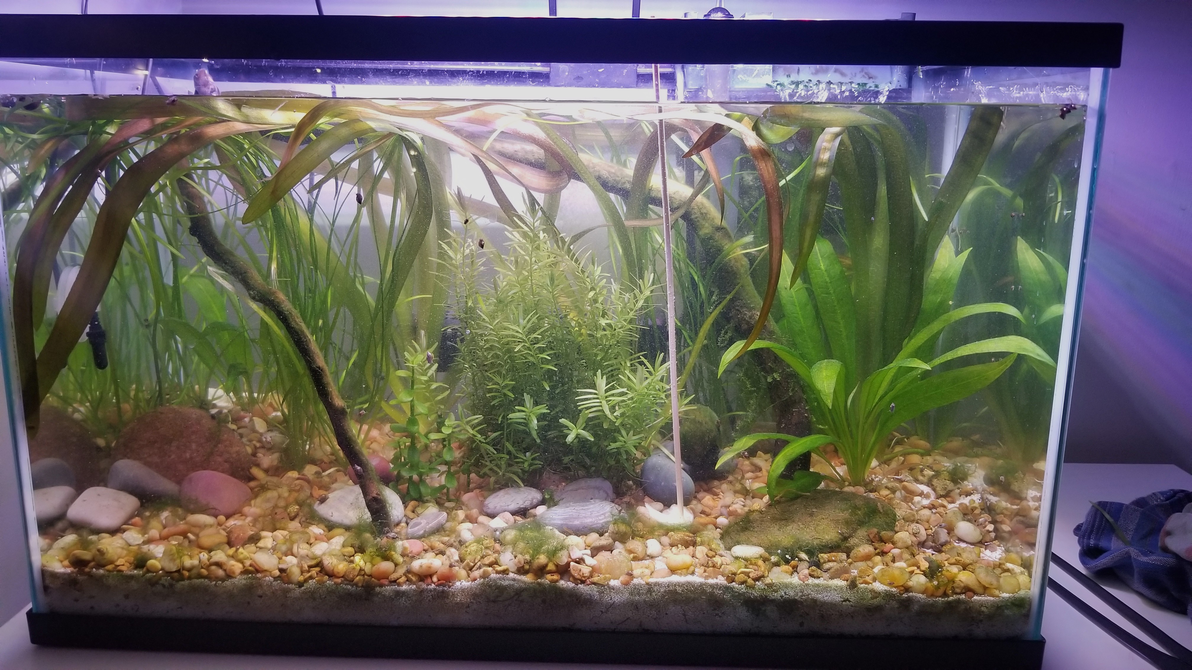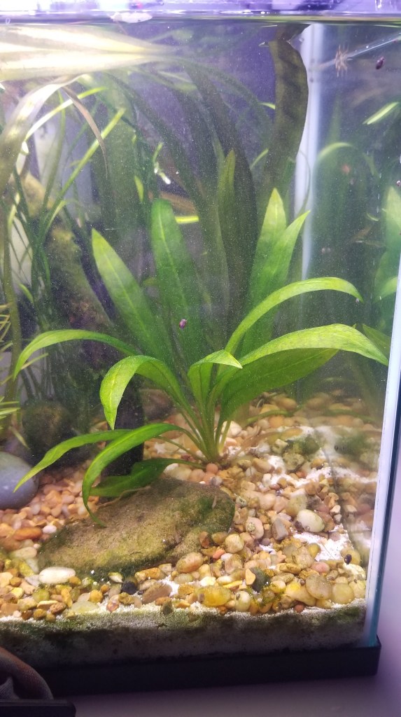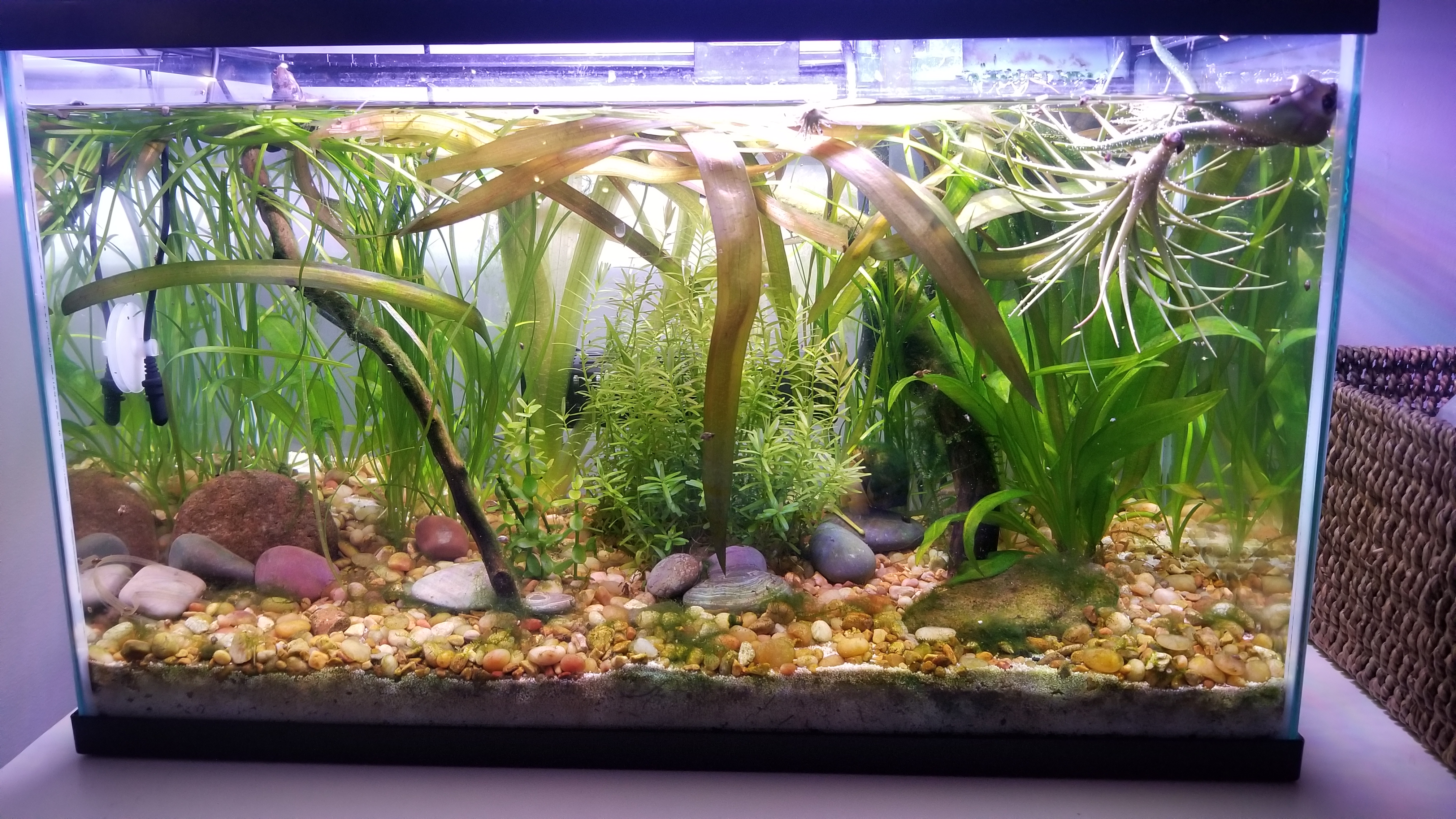 With each week I’m happier and happier with how it looks! My mystery snail, Steve is about 1.5 years old now. Personally I think he’s adorable.