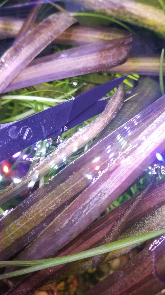 I’m removing some pups and trimming some jungle Vallisneria leaves.