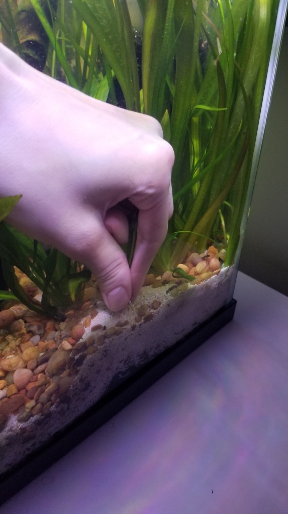 I want to give the sword plant more space, so I’m removing any Vallisneria that is too close.