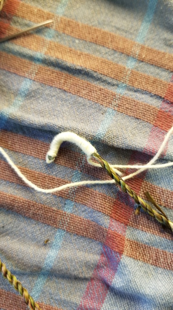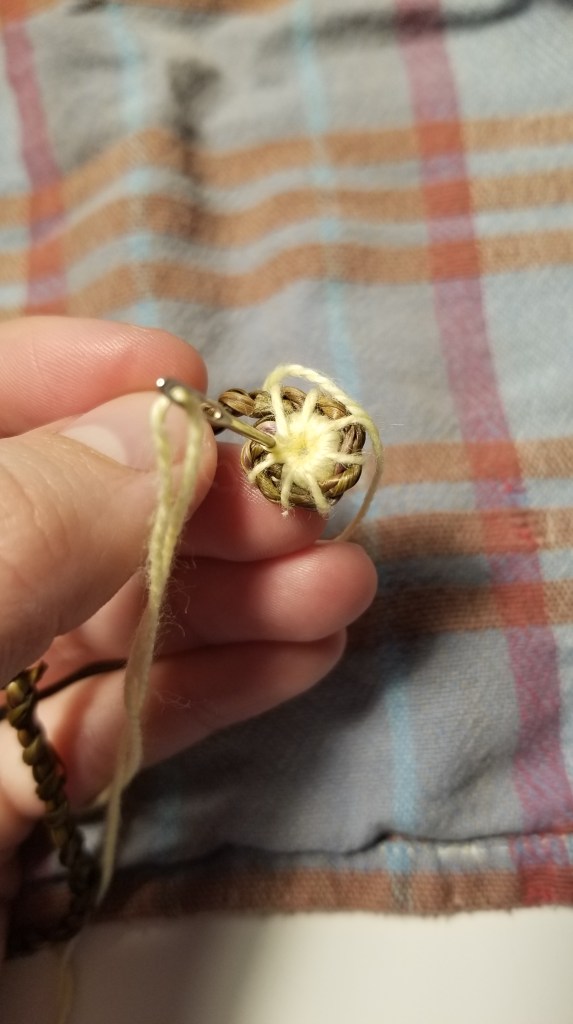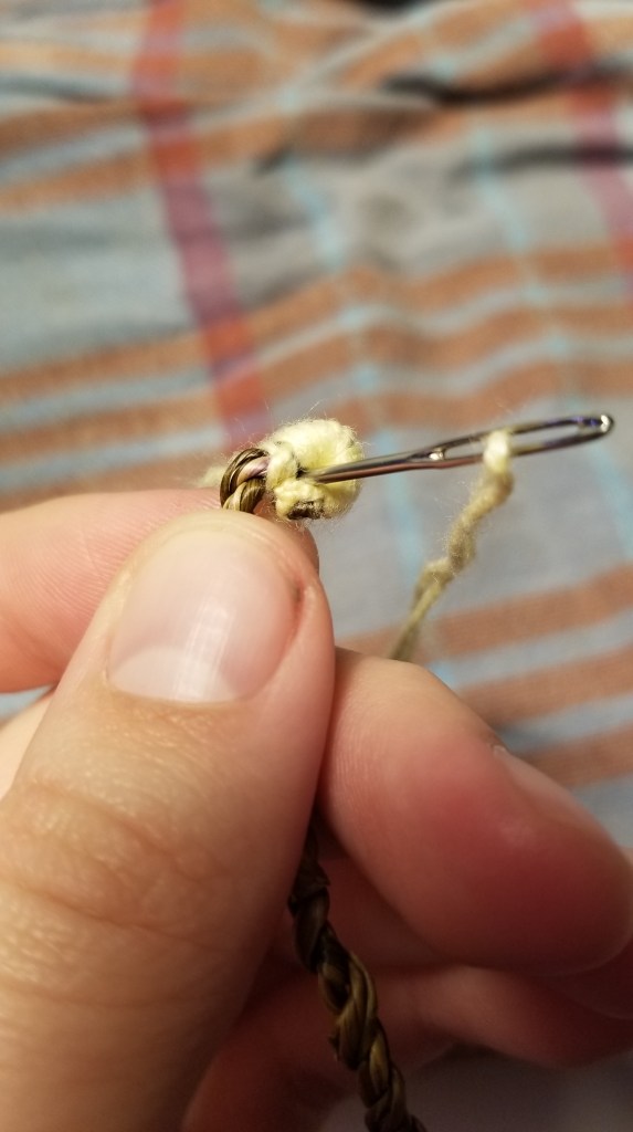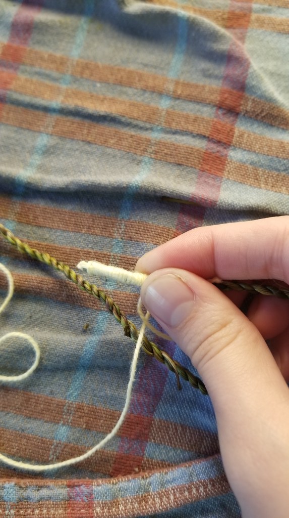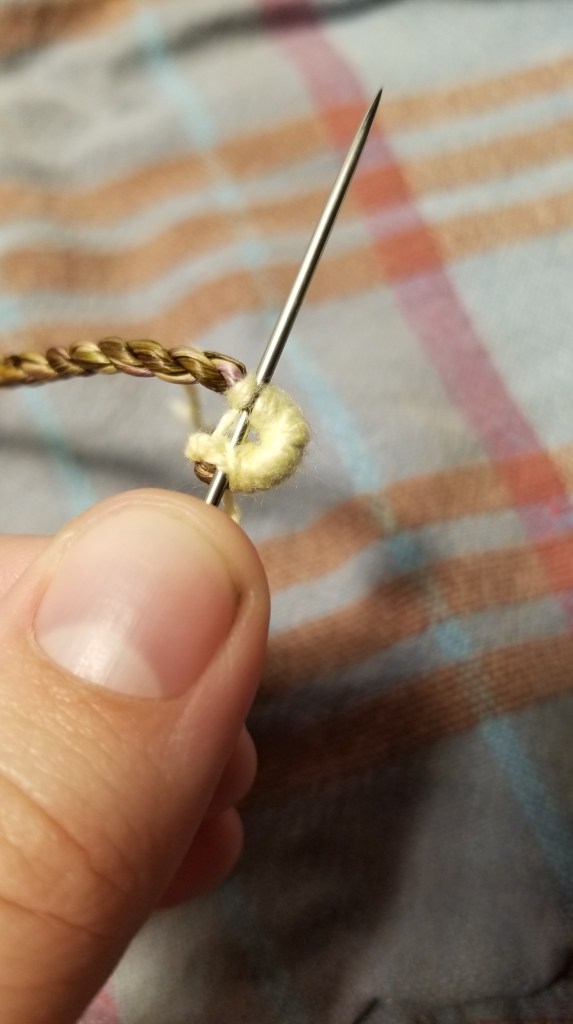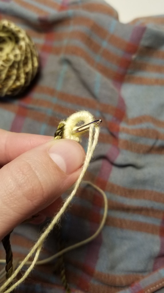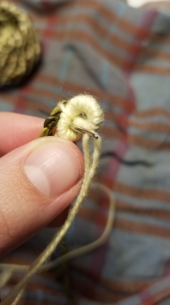 I trying some cotton embroidery floss from the dollar store. Which I later regretted. It was only 2 ply and it snapped multiple times. Because of this I couldn’t pull my thread as tightly as I like.