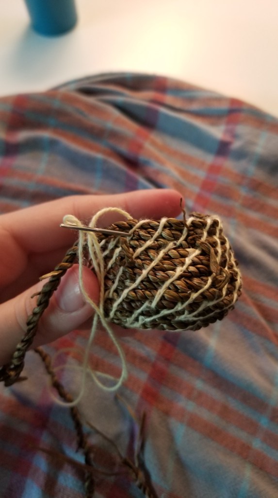 A couple more hours and I got a little basket! I backstitched along the top to help keep it secure.