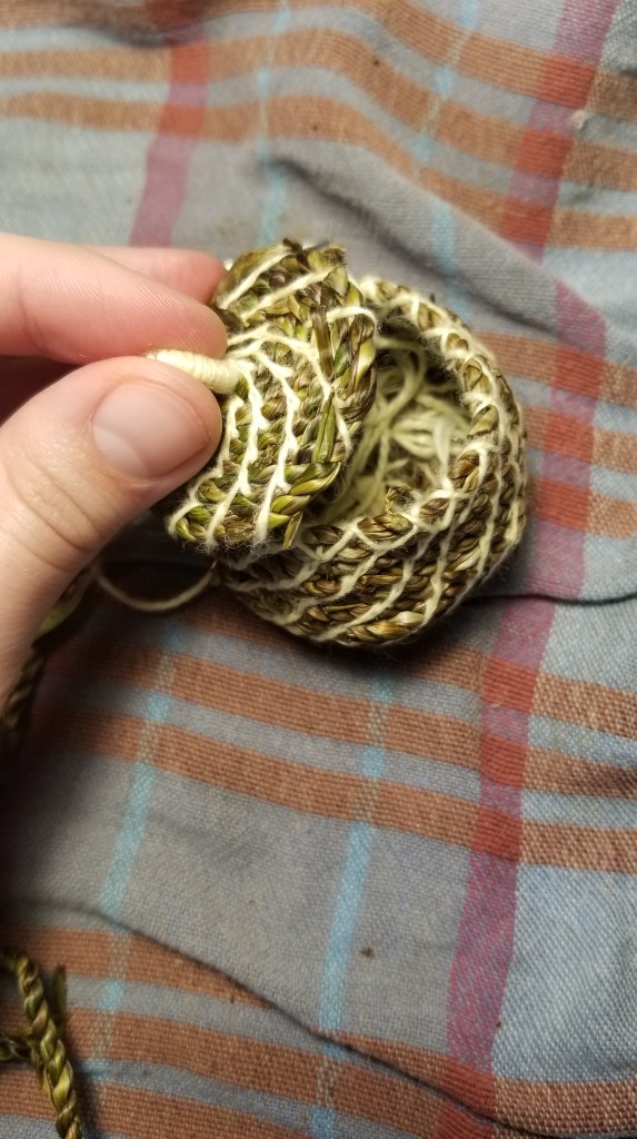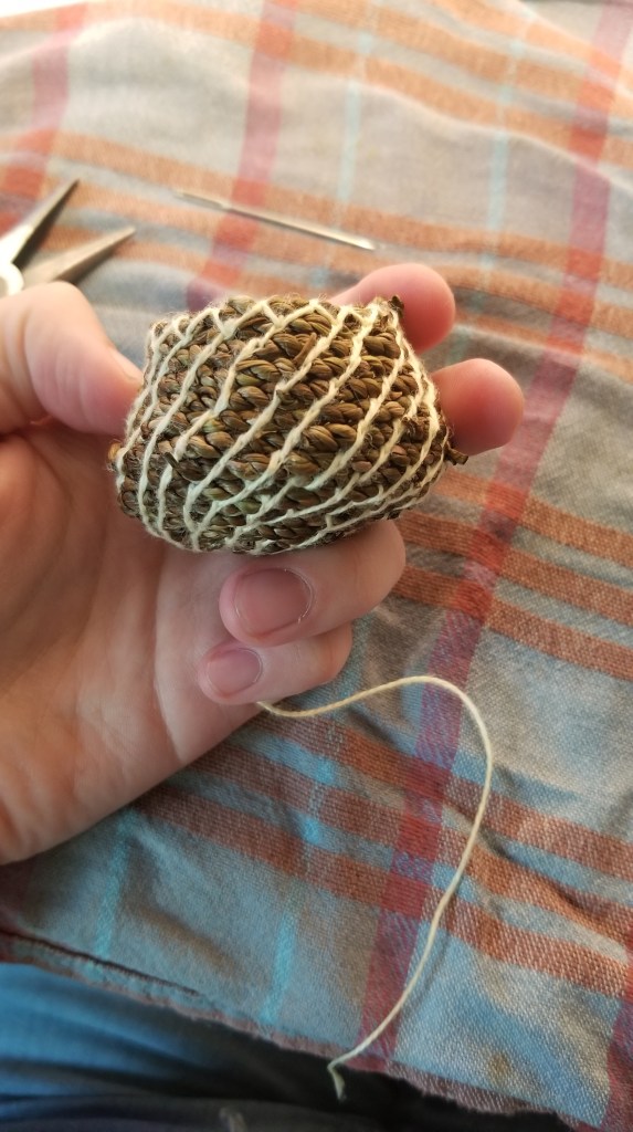 I found out recently you can use spent dandelion flower stems to make cordage. I’ve made baskets with pine needles using the coiling method before, so why not dandelions! It’s difficult to forage for natural materials where I live, but dandelions grow everywhere. At least until the city sprayed all the ones in the parks. . . but I still got a backyard full to work with.