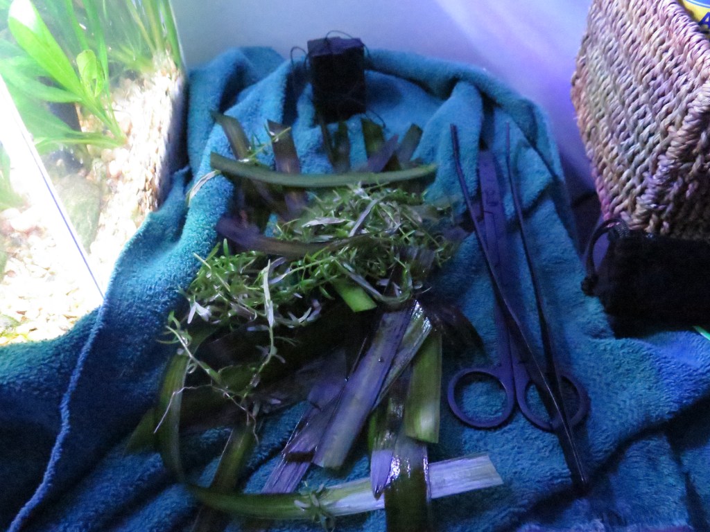 The large val plants are blocking the light so I’m giving them a hard cut back.