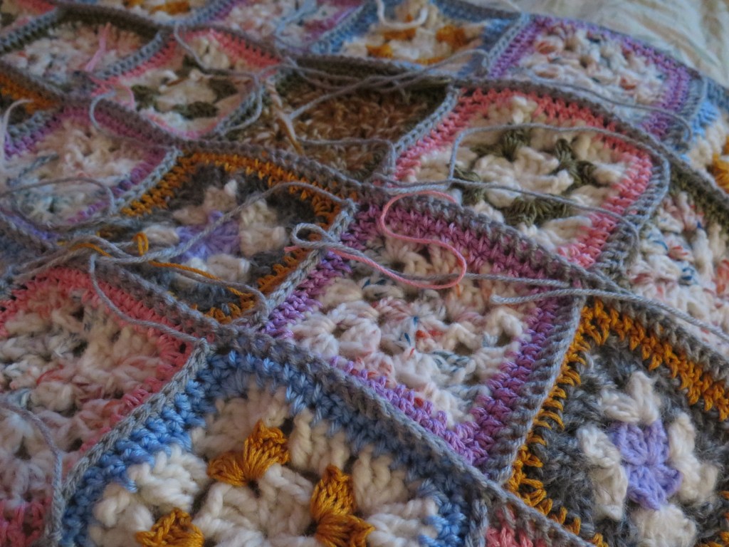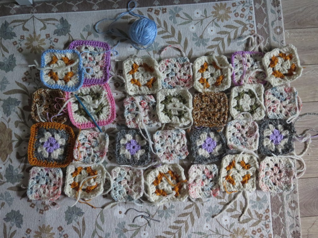 I bought some new yarn in fun colours recently. I started playing around with them and my hand spun to make granny squares. Once I figured it, out I started to crochet… and didn’t stop for 5 days straight.